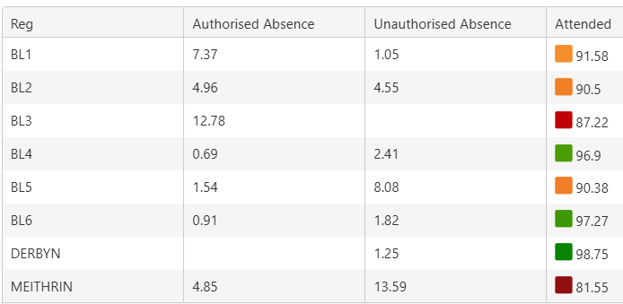 Presenoldeb / Attendance