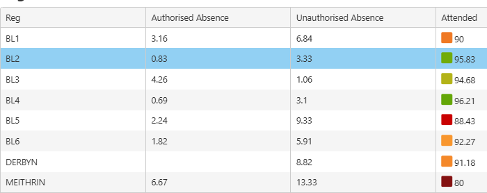 Presenoldeb / Attendance
